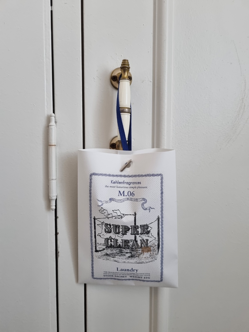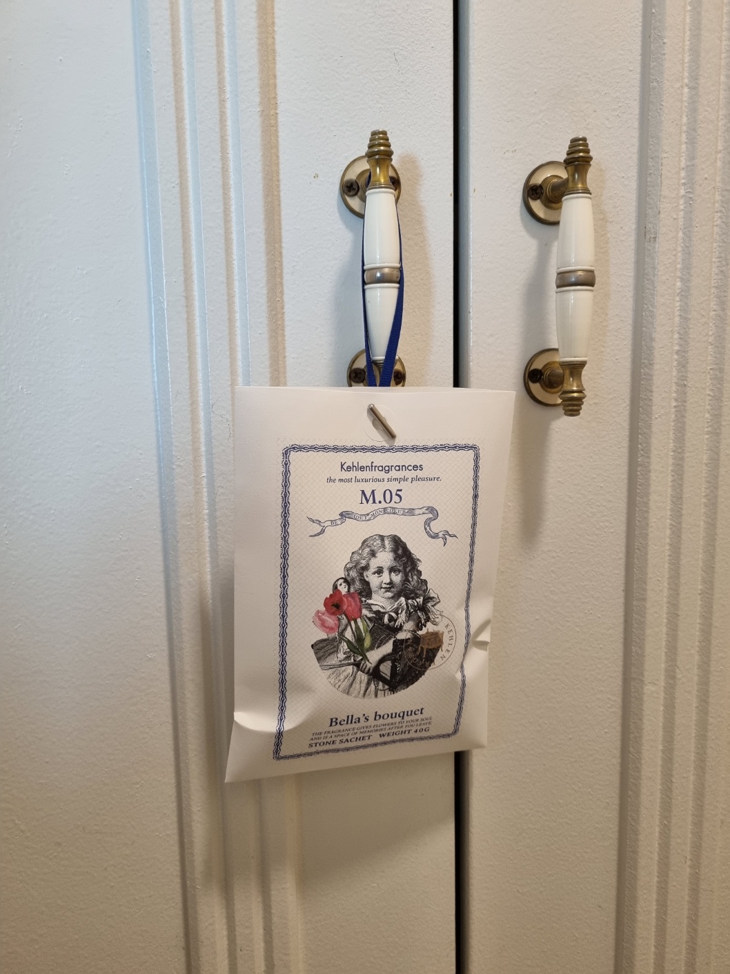 같은 마음으로 사쉐는 현관 신발장 손잡이에 걸어두었다.